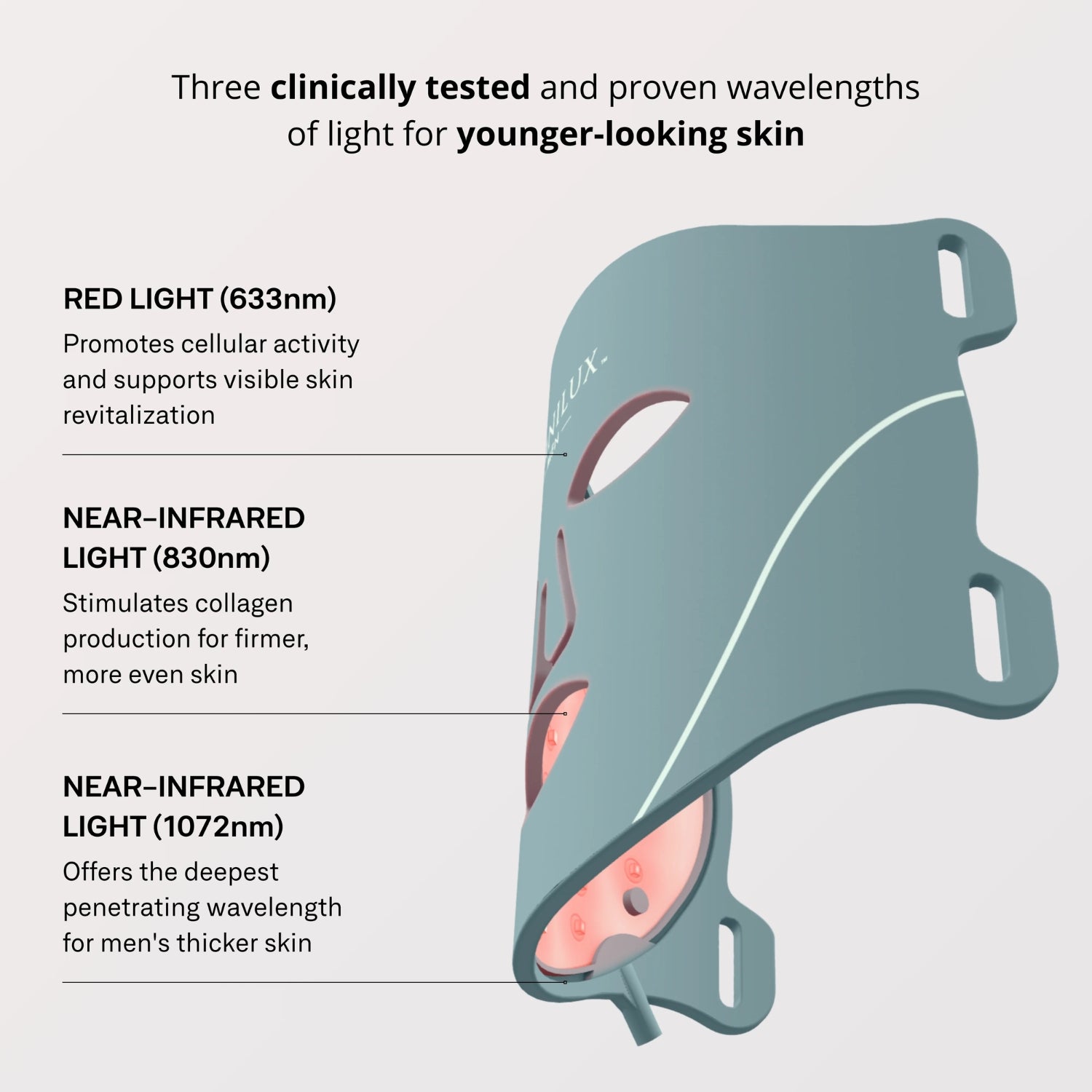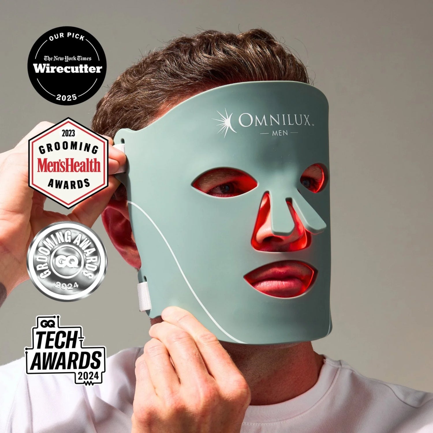 Medical-grade LED light therapy mask designed specifically for men’s skin to improve firmness and reduce visible signs of ageing.